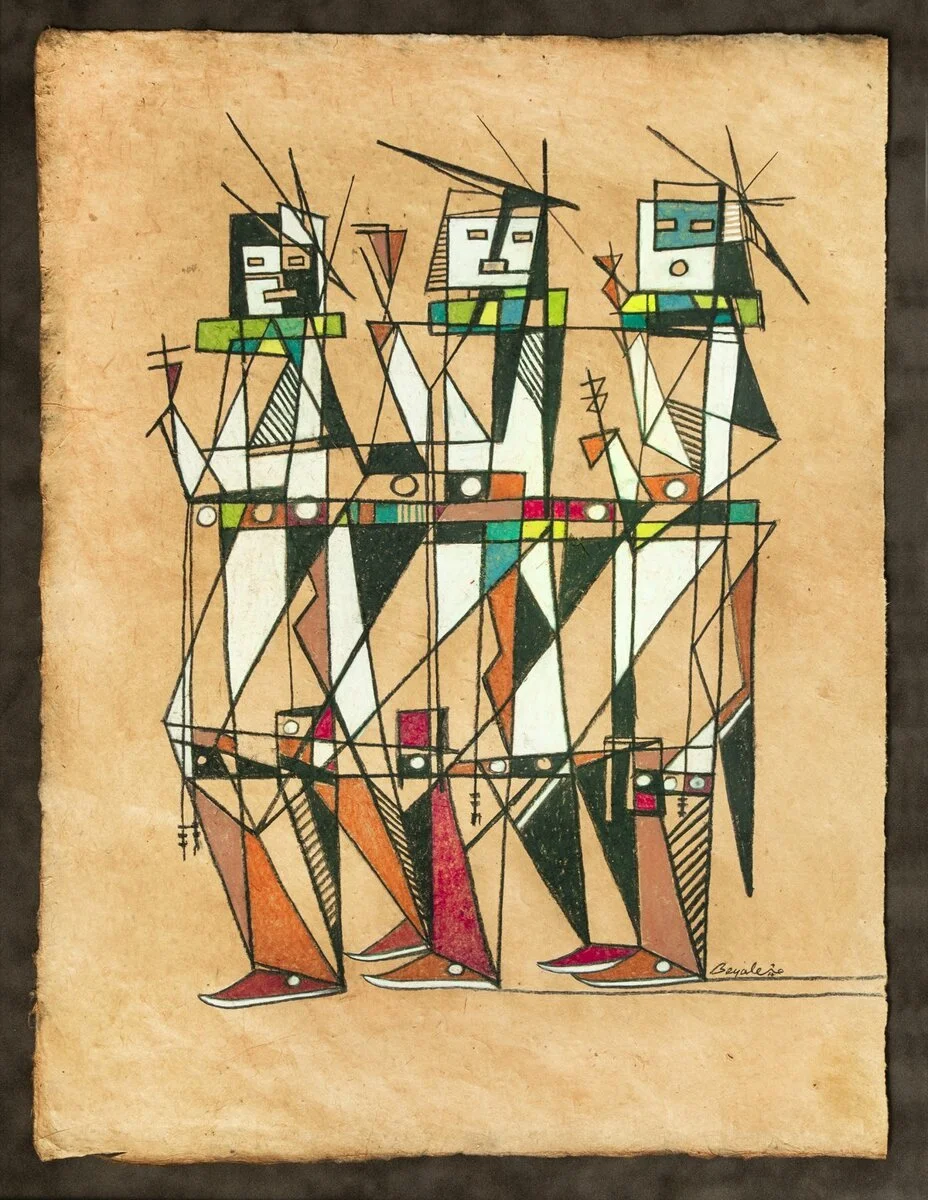 Wayne Nez Beyale is a Navajo artist whose beliefs and works are greatly influenced by the teachings of his father, Medicine Man, John Nez Beyale. Wayne was born and raised in northern New Mexico near the ruins of Pueblo Pintado. He draws and paints Native American, Southwest and traditional themes in contemporary realistic and impressionistic styles. He has won numerous awards for his expressive style that uses multiple lines to create the experience of movement. This technique is especially effective in his painting of Native American dancing figures including the Navajo Yei bi’che. Wayne currently resides in Denver, CO.
