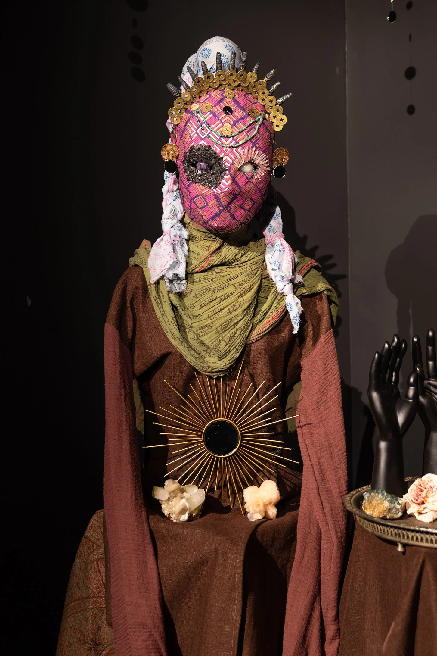 Faatma Be Oné (she/her) is a multimedia artist and educator. Her work is largely informed by her experience of being a stranger in a strange land and finding home in her body. Faatma tells visual stories and creates works at every scale from the miniature handheld work to the mural or installation experience. She feels into the details and the materials with a practice of making the mundane sacred because Everything is Ceremony.